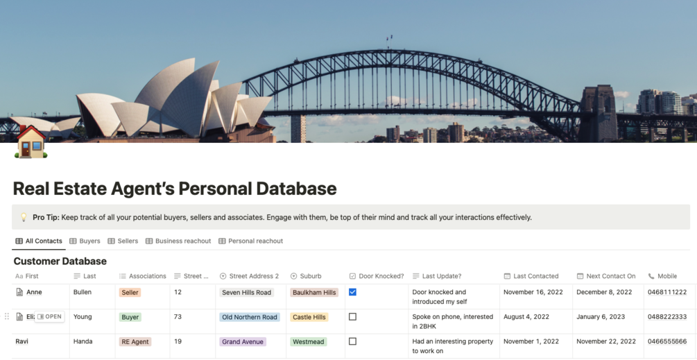 You are working at a Real Estate Agency and have to use their CRM systems. You put in the hard work but struggle to build your own customer database. You have tried Excel and Google Spreadsheet but they are too clunky and are not easy to maintain. They quickly become stale and you cannot easily update them.